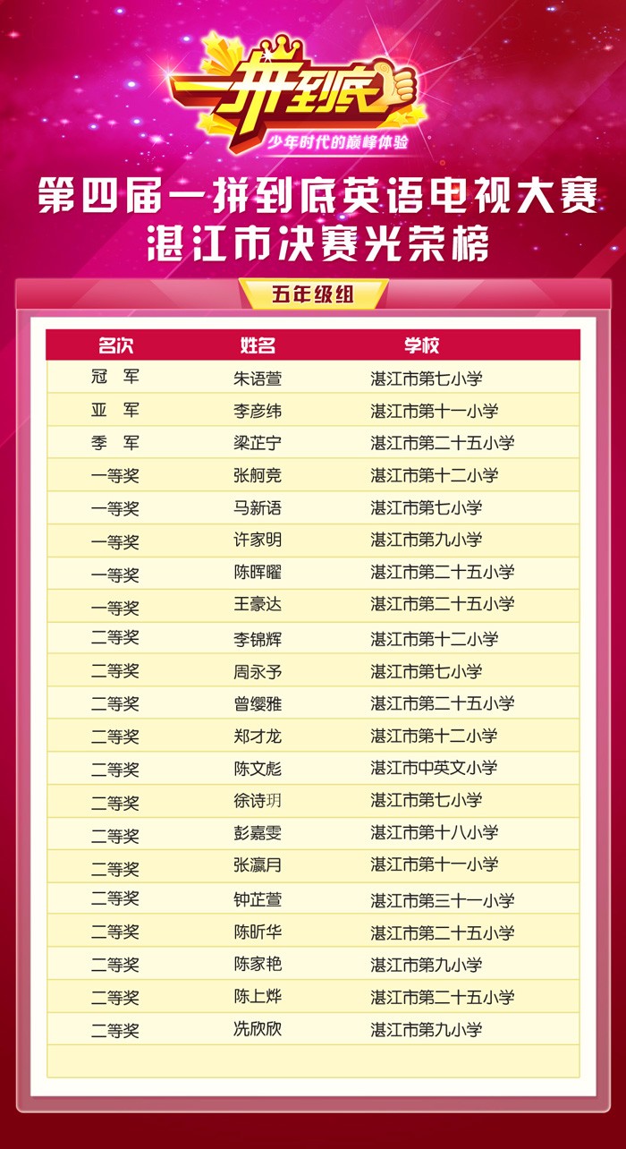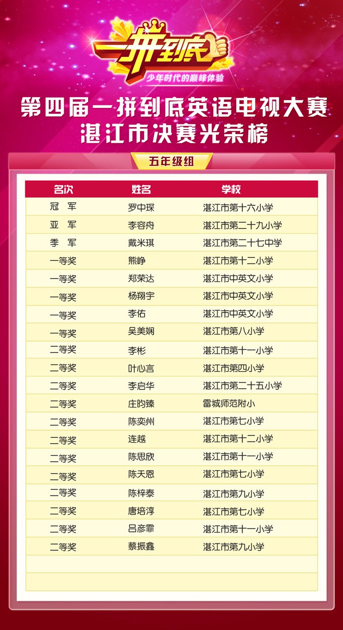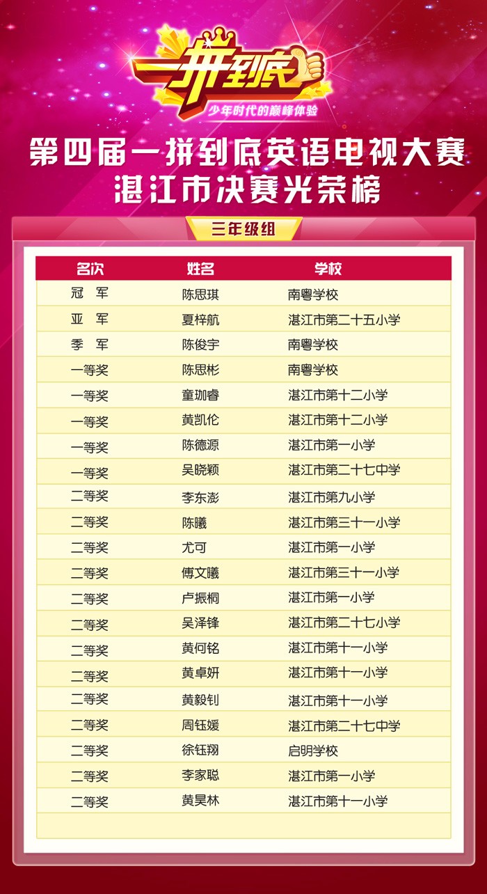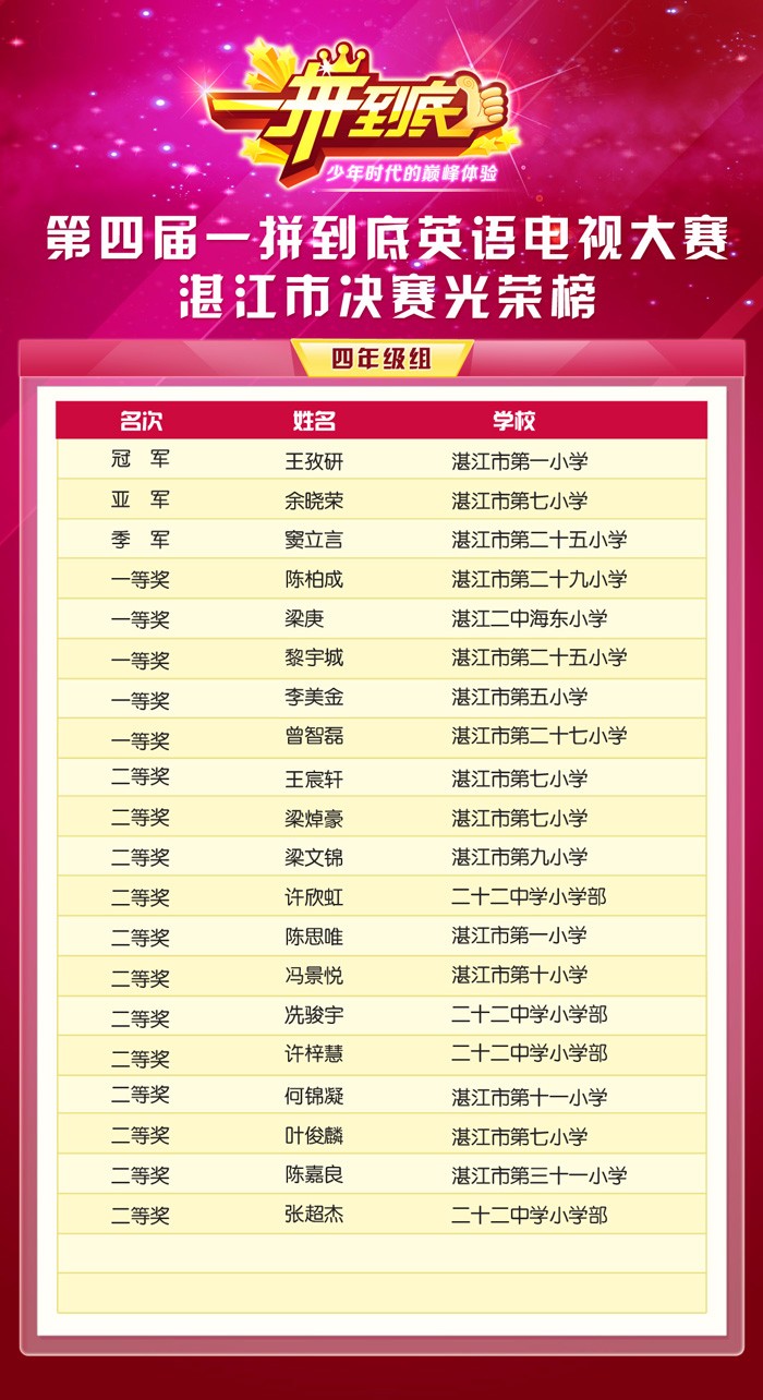 【湛江光荣榜】第四届“一拼到底”英语电视大赛