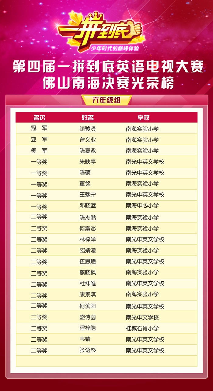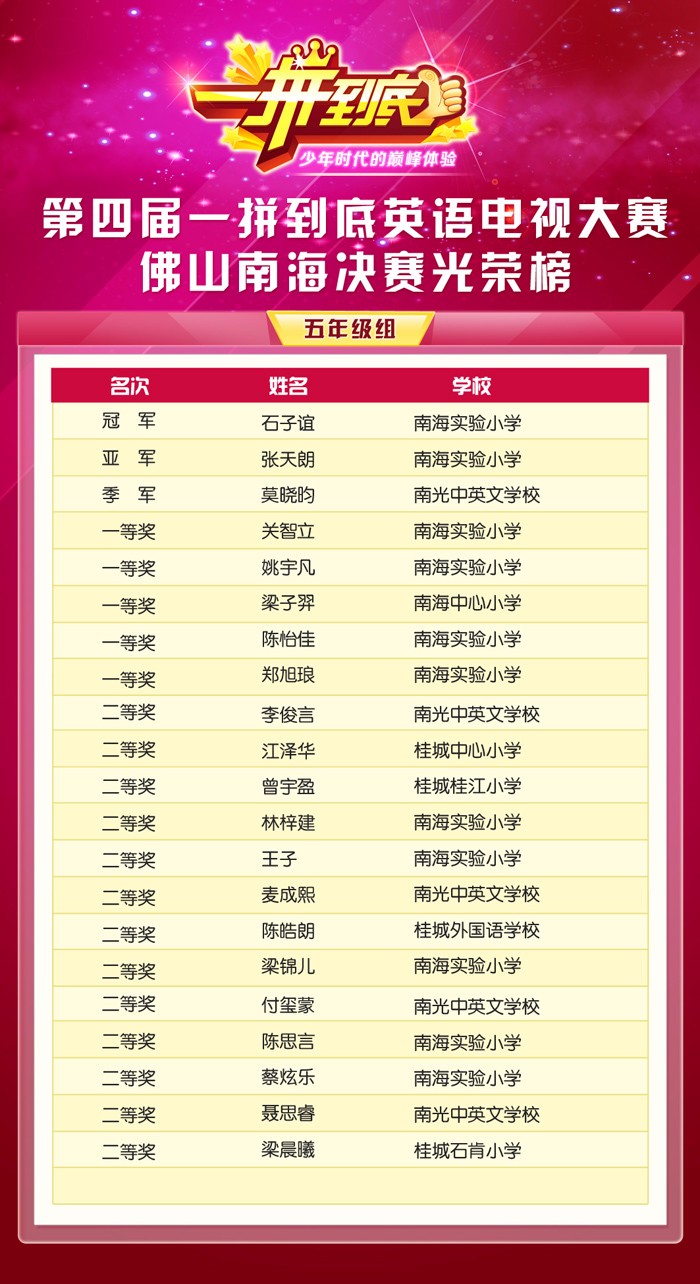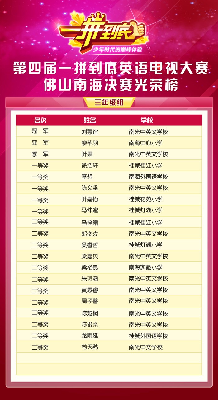 【南海光荣榜】第四届一拼到底英语电视大赛
