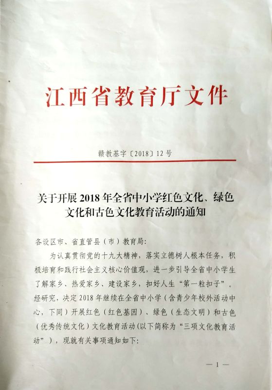 关于开展2018年全省中小学红色文化、绿色文化和古色文化教育活动的通知