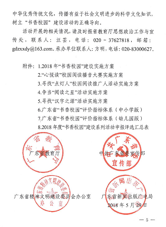 (一)“书香校园”建设活动(详见附件1)通过学校申报、各地级以上市评审和省组委会认定,建设一批在校园文化建设和学生阅读活动方面成绩显著、特色鲜明的中小学、幼儿园。