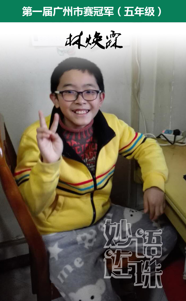 林焕霖选手来自广州市就读于知信小学,五年级,第一届妙语连珠成语电视大赛广州市决赛获得五年级组冠军!