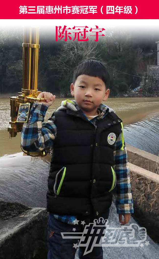 陈冠宇选手来自惠州惠城区就读于惠州市外国语学校,四年级,第三届一拼到底英语电视大赛惠州市决赛获得四年级组冠军!