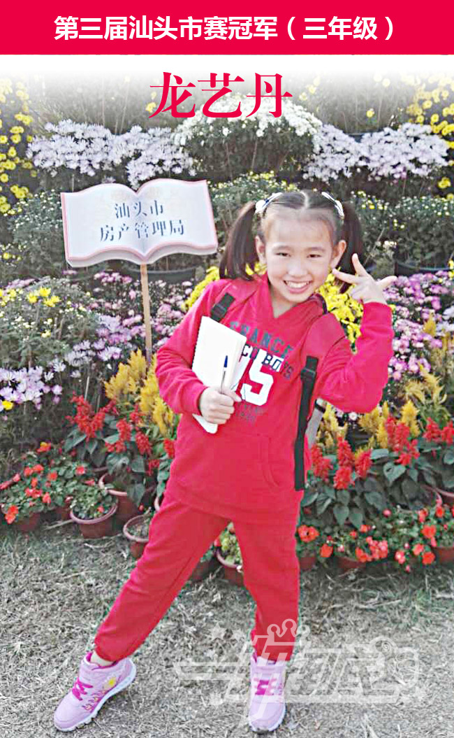 龙艺丹选手来自汕头市就读于桂花小学,三年级,第三届一拼到底英语电视大赛汕头市决赛获得三年级组冠军!