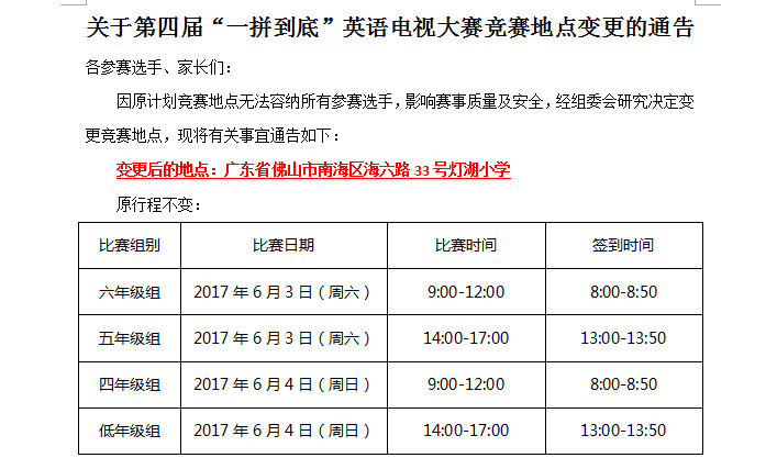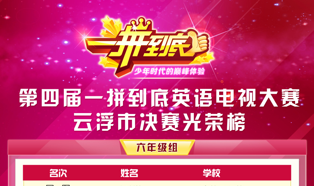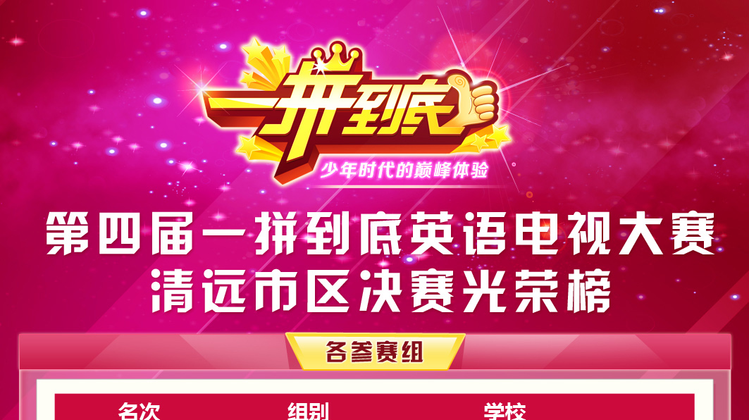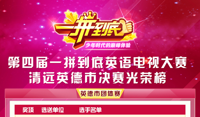 根据一拼到底英语电视大赛组委会赛务工作安排,现公布第四届《一拼到底》英语电视大赛广东省总决赛相关事宜,请各城市市决赛的冠、亚、季、一、...