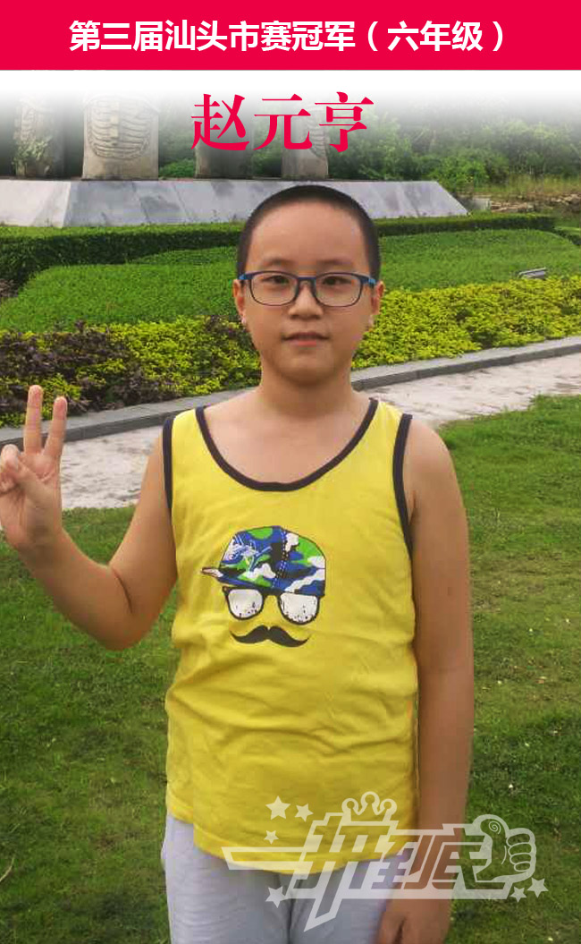 赵元亨选手来自汕头市就读于东厦小学,六年级,第三届一拼到底英语电视大赛汕头市决赛获得六年级组冠军!