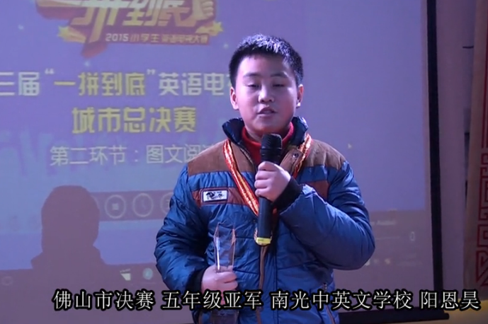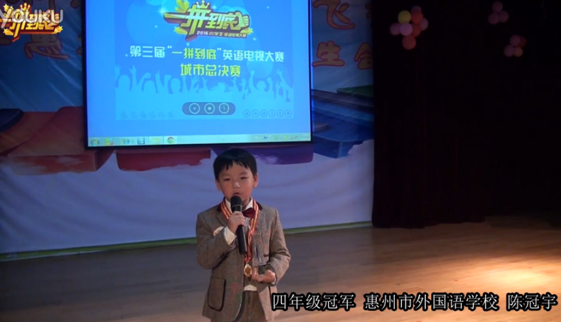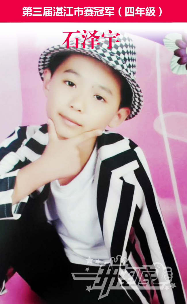 石泽宇选手来自湛江市霞山区就读于启明学校,四年级,第三届一拼到底英语电视大赛湛江市决赛获得四年级组冠军!